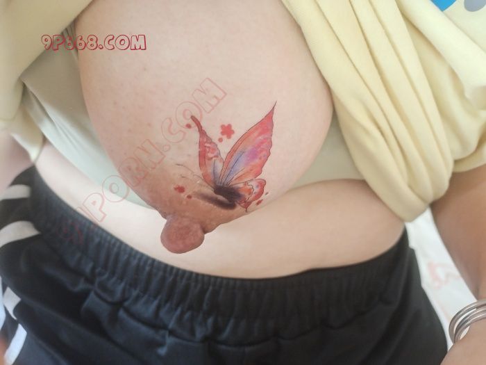 趁她正襟危坐的操作电脑,我见缝插针,撩起遮羞布,扒开乳罩,拿出四两奶子放上两只蝴蝶,拉着她的手按着衣服,拍照存档。期间有神兽出没,耐心不多,出了小纰漏:左右蝴蝶贴反了