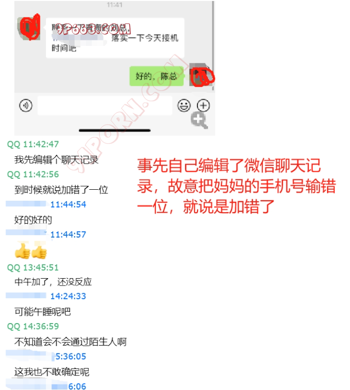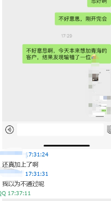 他是00后,妈妈70后,妈妈单身10年了!这种单身的机会还是很大的。目前他们不在一个城市生活。由于妈妈不玩抖音,只能试着加微信了,刚开始儿子给我的是微信号,微信号加好友,很难解释。手机号加的话,可以提前自己用两个微信编辑个聊天记录,用另一微信给这个号发信息,故意把手机号修改一位,要提前查一下修改一位后的手机号能查找到微信,这样加上妈妈后就给她看聊天记录截图,就说是加错了一位!果不其然,妈妈顺利通过了我的好友。