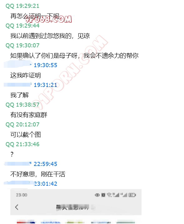由于以前也发现过有人忽悠我,说是妈妈或者岳母,有时候是别人,有时候可能是他自己的两个号,这种心态很难理解!所以要验证对方母子身份,至少要看他们聊天记录和家庭群截图!儿子给我发了截图,基本可以确定母子关系!