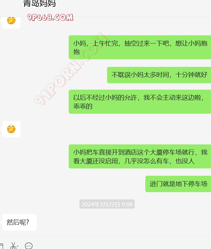 哈哈,青岛儿子还没成功,那天第二天青岛妈妈见我一面,她来例假了,只在车上给我lu了一会。