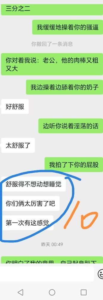 给技师舔肉棒后,还喊着技师快点来操死她。跟老公说技师的肉棒又粗又大的时候一直喊好舒服。夸赞我和技师两个人太厉害,把她搞得太舒服了不想动,感觉很飘,身体都不是自己的了,第一次有这样的感觉。两个人搞她,爽死她了,靠想象就被搞高潮了。
