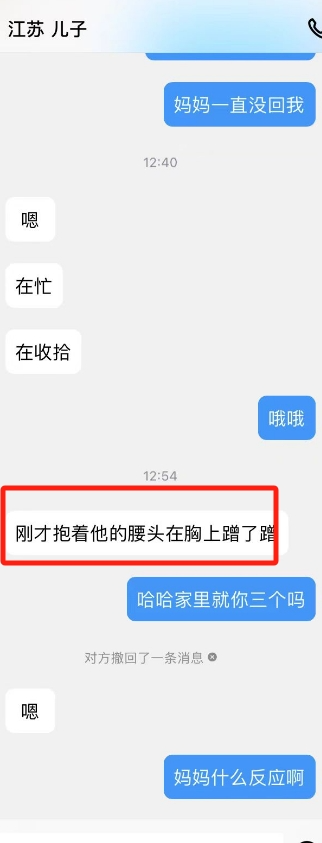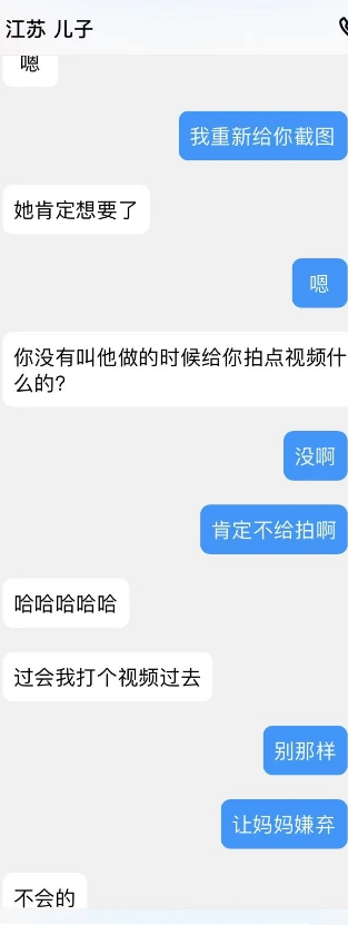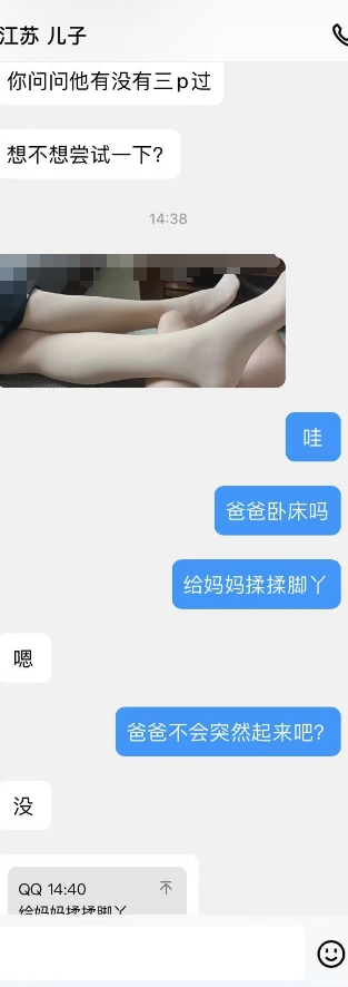 儿子的爸爸出院了,妈妈在他家照顾呢,刚才儿子偷偷抱了抱妈妈,还蹭了奶子。看看晚上有没有机会去妈妈那吧,他那是不方便了。继续PUA妈妈母子话题,让她觉得母子做也很正常。