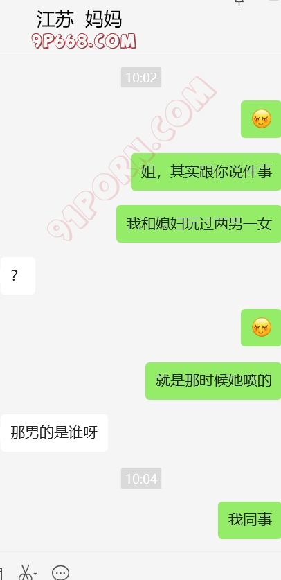 又给她下了一剂猛药,告诉她我带媳妇和同事3p过(3p的照片视频是真的,只不过女的是我单身的情人,在她家做的)
