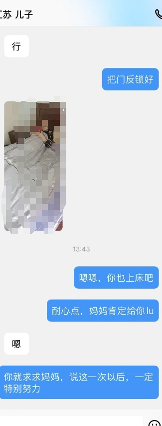 妈妈态度还是比较硬,儿子那几天没趁热打铁,废了