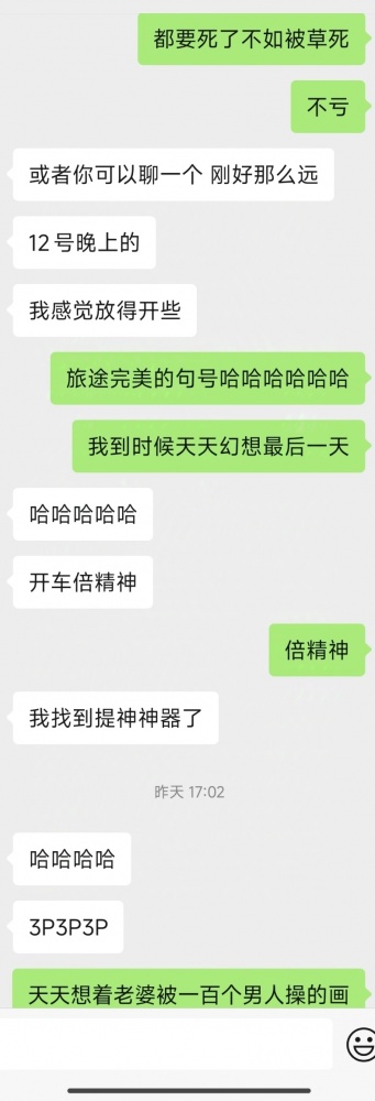 10.12成都招单男一位,国庆计划川西旅行,预计旅程最后一天夜晚快乐一下,我们夫妻感情一直挺好,就是性生活不太满意,时间久了缺一些刺激,妻今年开始陆陆续续有了几个单约的对象,每个月能约上几次,还未有3p过,打算这次尝试一下,先说一下我们条件我173 125 30,妻158 95 30 B
