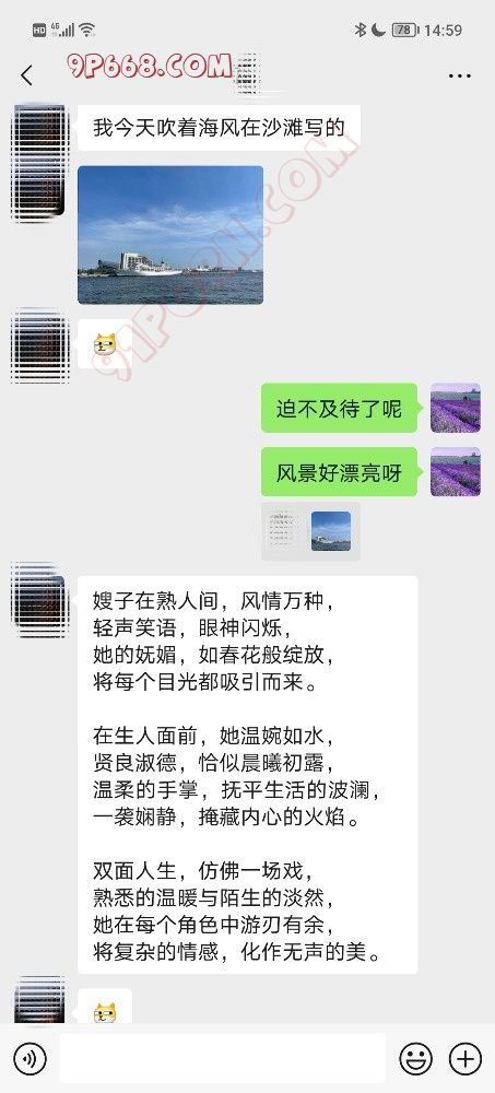 这位网友是九月底加的,当时和老婆相聊甚欢。十一黄金周网友带父母去日本旅游,女朋友不在身边比较自由。国庆那天老婆在万达广场逛街,时间也比较充裕,两个人几乎聊了一整天。晚上回家老婆还抱着手机聊个不停,是不是自己在那傻笑。激起了我的好奇心,一番询问也没问出个所以然来,好像这个网友情商颇高很会聊天。哦,还有个事,这个网友竟然给老婆写了首诗。