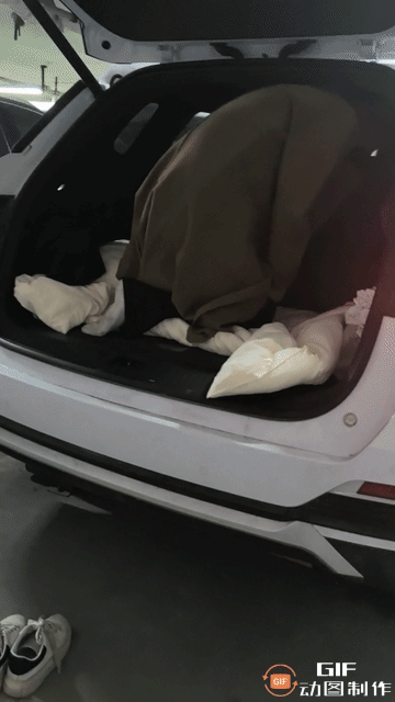 我还在纳闷她在干什么,就发现她已经钻进后备箱开始脱裤子
