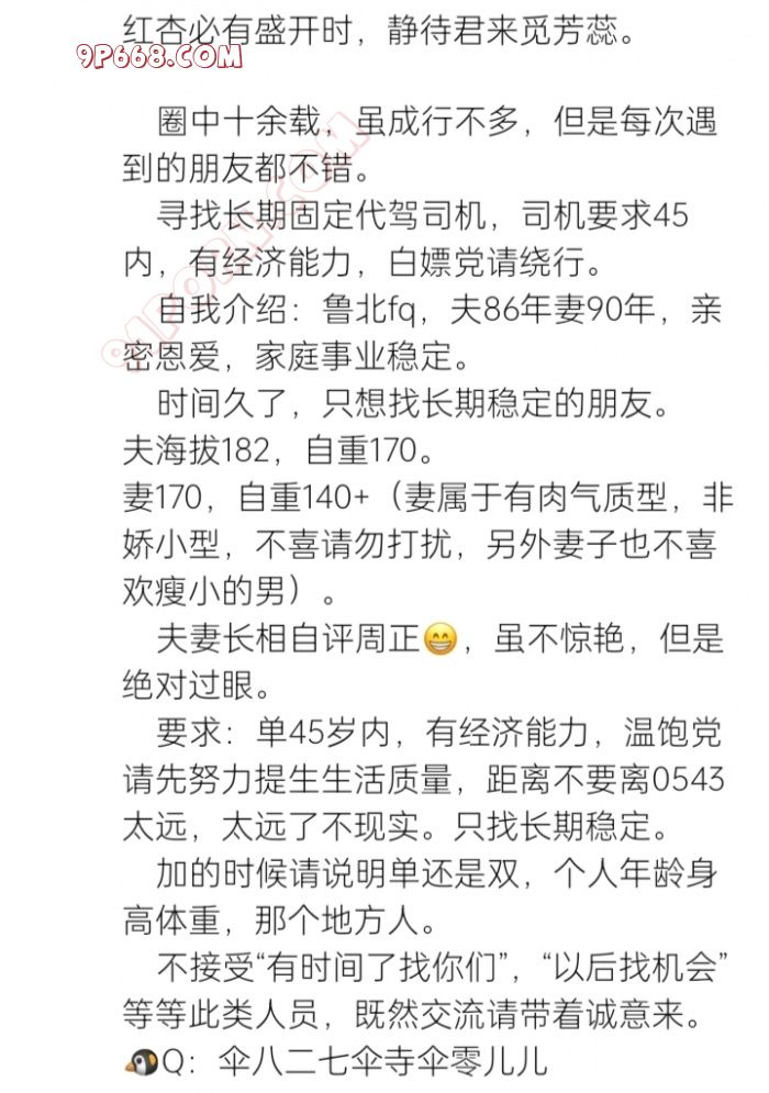 自我介绍:鲁北fq,夫86年妻90年,亲密恩爱,家庭事业稳定。
