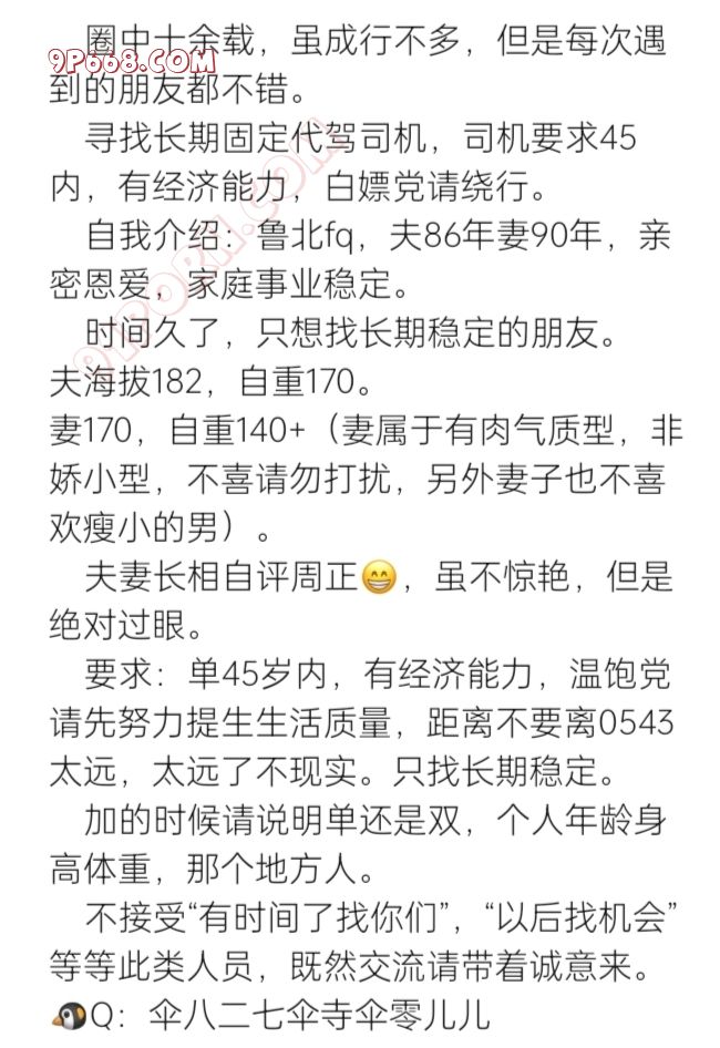 寻找长期固定代驾司机,司机要求45内,有经济能力,白蹭党请绕行。