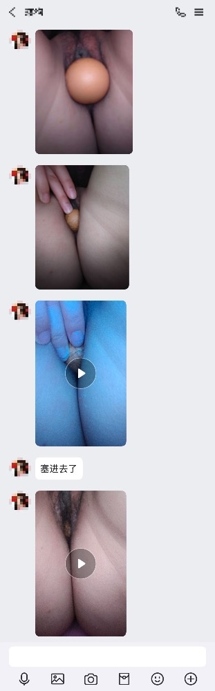 既然出现了,那必须继续调教玩弄起来咯!家里的玩具怕她妈发现都扔了,只能就地取材,所以有了鸡蛋塞狗逼,酒精瓶子插逼的戏码,详见聊天记录吧。