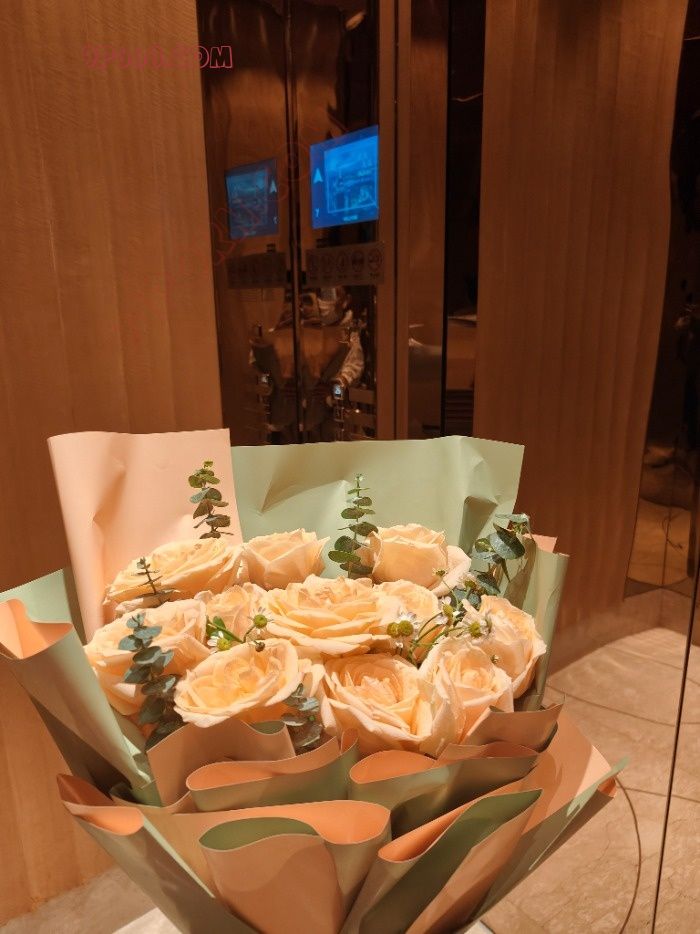 我在火车上就给夫人预定了一束花