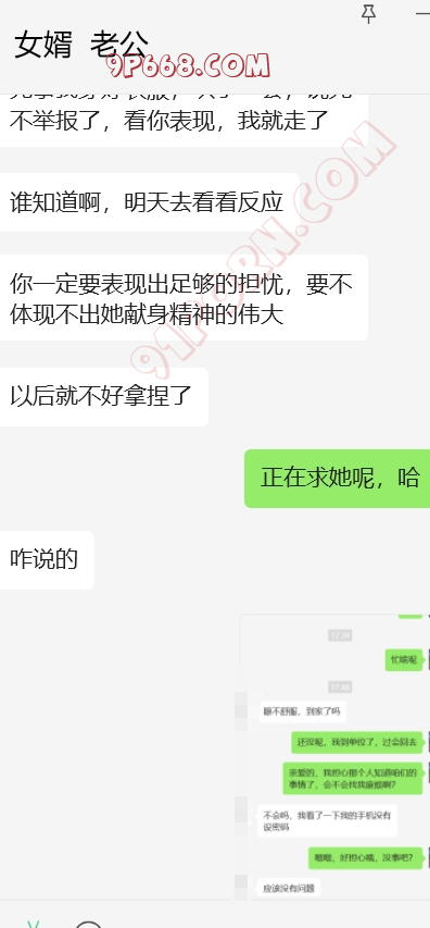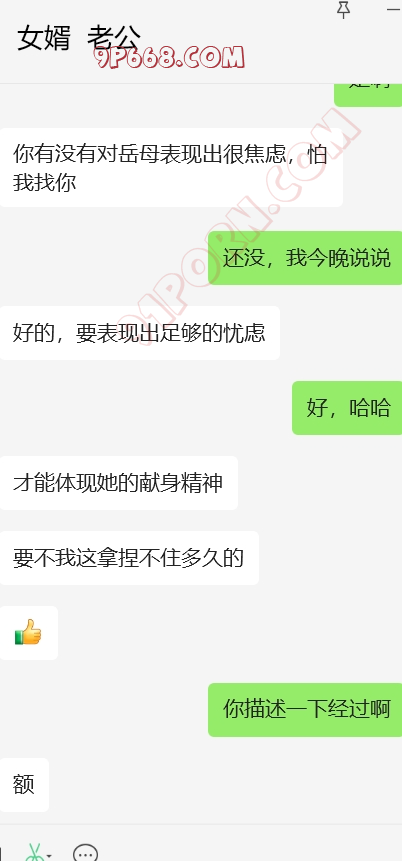 完事女婿走后,岳母立马给我打来微信电话,告诫我不要再在抖音发信息了,说被人登录了,但是就是不说是谁,我也装傻。岳母电话中情绪特别稳定,也于我之前给她灌输女婿岳母的观点有点关系。