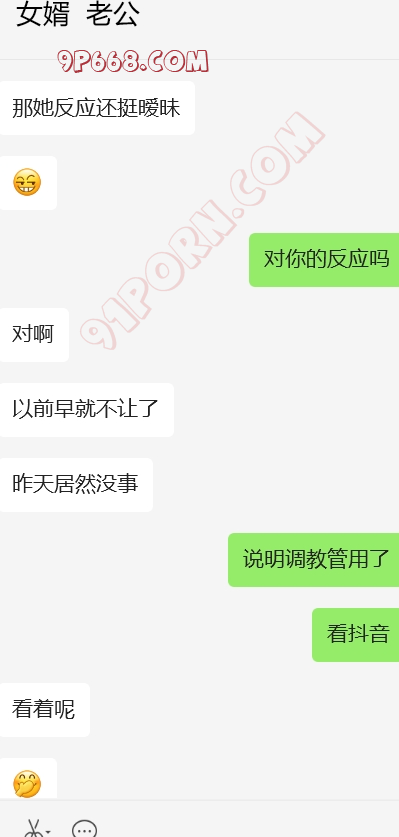 完事女婿走后,岳母立马给我打来微信电话,告诫我不要再在抖音发信息了,说被人登录了,但是就是不说是谁,我也装傻。岳母电话中情绪特别稳定,也于我之前给她灌输女婿岳母的观点有点关系。