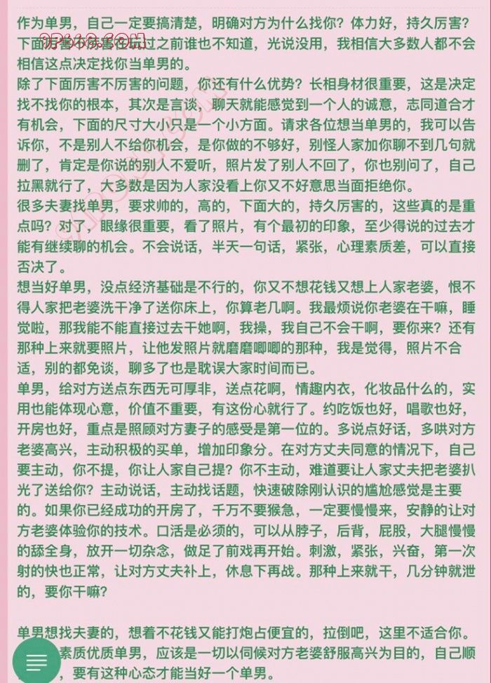 另外还有一点很重要,你的财务能力必须要宽裕,一场活动免不了一些吃喝,住宿,小礼品等等。我们玩夫妻交友虽然不是为了图钱,但是钱这玩意还是非常能让女人对你产生好感的。你不可能指望一个女人对一个月薪几千的D丝俯首称臣,任他调教对不对?人都是慕强的。