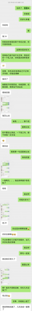 男生加了我的微信之后,急不可耐的要开始。我让他按住性子一步一步来。首先从恋爱的问题切入,谎称告诉男生的前任来找他复合,但是他很纠结。姐姐顺着话题问他为什么纠结,他就说怕沉迷。姐姐很纳闷,为什么会沉迷呢?因为…怕经常做爱——话题很自然切换到性,可以看聊天记录
