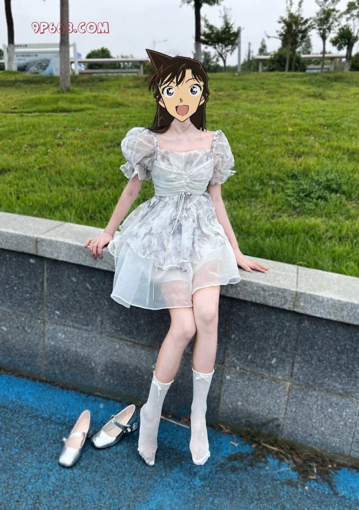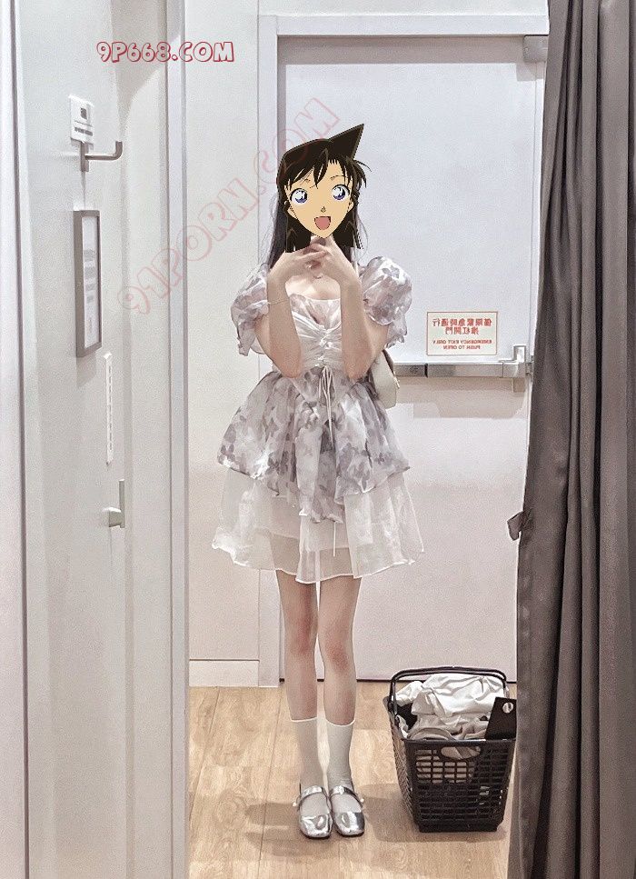 然后穿上肉丝白袜,穿上可爱的公主鞋准备出门了