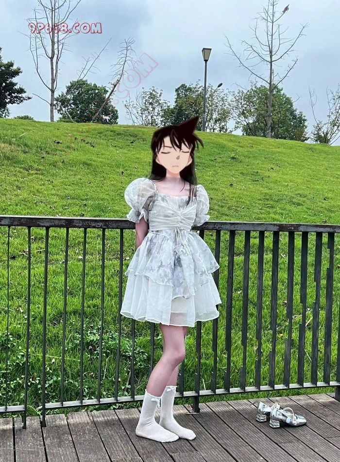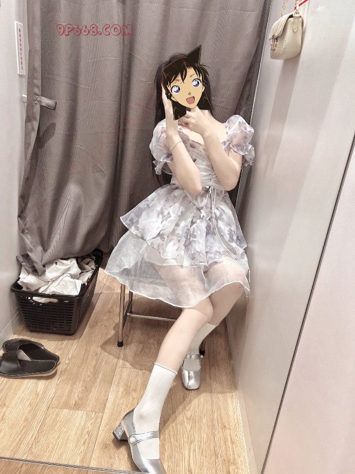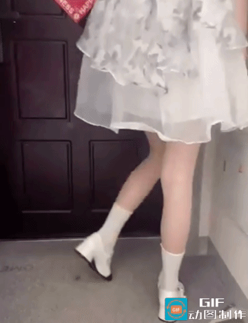 然后穿上肉丝白袜,穿上可爱的公主鞋准备出门了