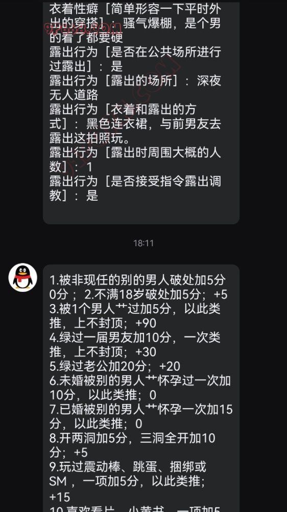 23.和男朋友老公以外的人裸聊加10分,