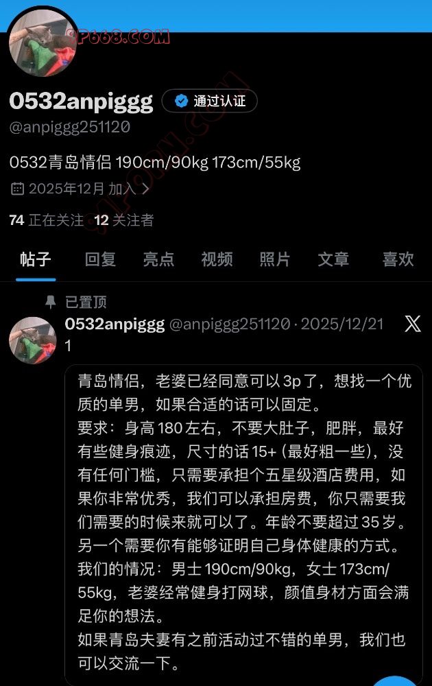 青岛情侣,老婆已经同意可以3p了,近两天去济南,想找个优质的单男,如果合适的话可以固定。