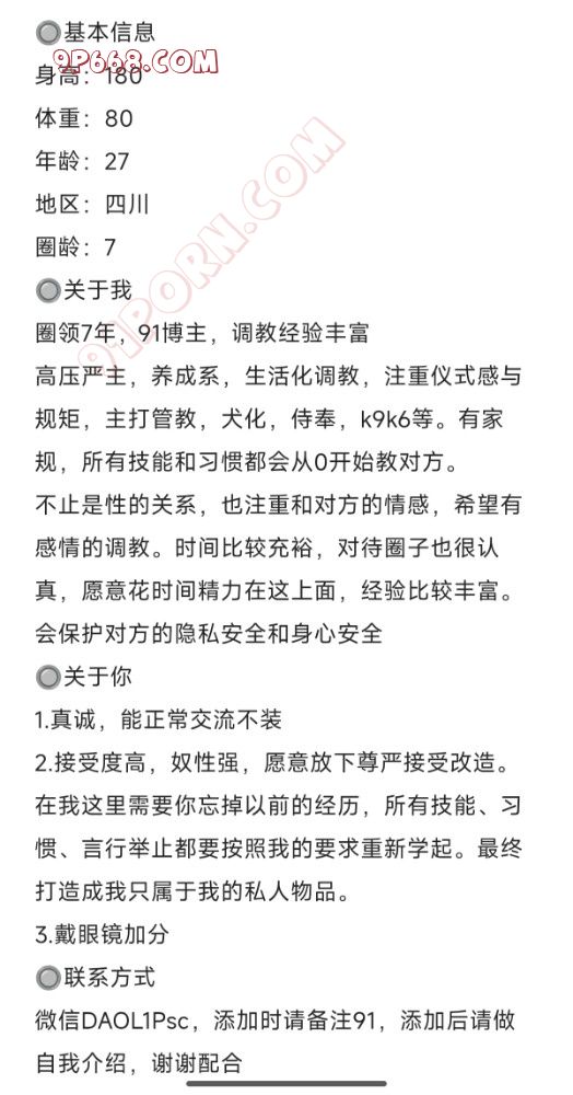 本帖最后由 萝莉杀手12 于 2026-2-19 22:22 编辑 本人现公开收奴,简介如下,有意者可以添加绿泡泡详聊