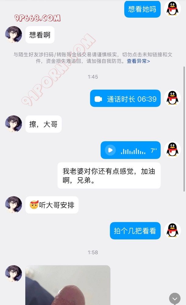 接下来就转战去了企鹅,然后让老婆带着口罩视频给他(老婆之前强烈拒绝视频的,今天顺势突破了),这是后面去的企鹅,聊了十多分钟,直到单男打飞机出来
