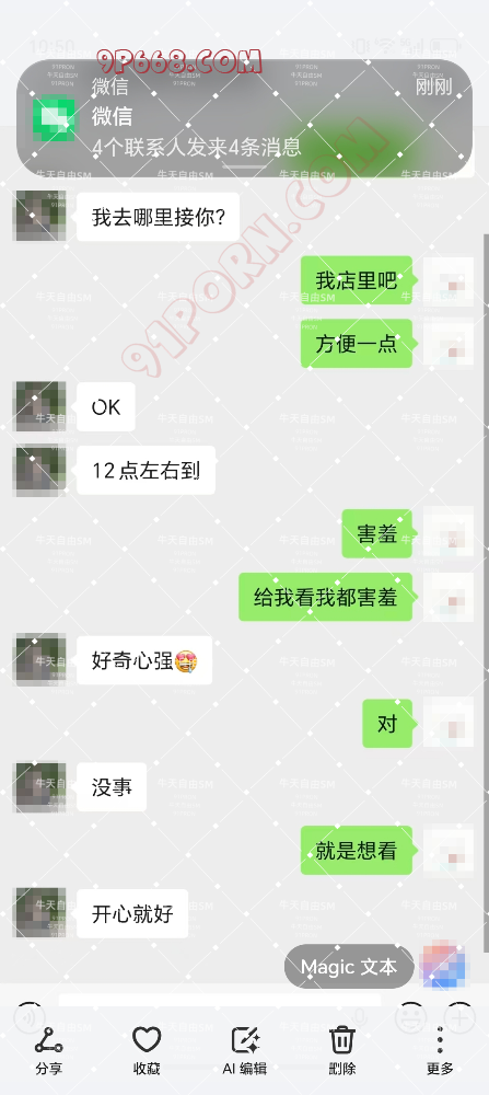 之后老婆就夸照片里面的男的鸡巴很大,这个单男就和老婆说,图片的男的鸡巴其实很小,他自己的鸡巴更加粗大。然后就勾引我老婆,要当面给我老婆看,就只是看看,不做也可以。然后就一步步的,老婆被约去酒店开房了。剩下的过程就看截图吧。这次总的来说,感觉很刺激,老婆第一次和单男去开房,整个过程对我来说,很煎熬,见完单男后,我们迫不及待的想要见到彼此,然后见了面就是疯狂的做爱了,确实能刺激到,增加性爱的激情。