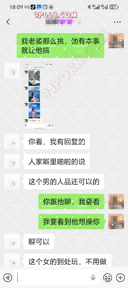 开头简单的说一下老婆和这个男的是怎么认识的,老婆跟他认识有2年了,是以前一起打羽毛球认识的球友【简称单男吧】,之后偶尔有联系,老婆也没怎么跟他聊,这男的偶尔也会发一些色图,想勾引我老婆吧,我老婆的原话是老公,他想操你老婆。这次老婆和他约,也是从他突然发了2个QQ聊天记录截图开始的,是一个女的和5个男的大战的聊天截图,引起了老婆的好奇心。之后老婆说图片中的鸡巴好大,单男这时候直接说自己的鸡巴更大,老婆直接被勾起了好奇心,单男也趁机约老婆去酒店开房看。老婆说想先看看照片,单男就拍了他的大鸡巴照片发给老婆看,确实是挺大的。老婆也有想看的冲动。老婆也和单男说开房的话只是看看,不做爱什么的。就是单纯的看看他的大鸡巴。这里我感觉老婆还是比较单纯,真到了酒吧开房,就不是那么好控制的了,你们说对吗,男的精虫上脑,就不会说不做就不做的。这件事的起因有一部分也是最近我们夫妻做爱感觉也比较平淡了,本身也想着看能不能找点刺激来增加激情,正好早上单男给老婆发来了2张QQ聊天记录截图,老婆就发给我了,我就鼓励老婆和他聊聊看,之后就有了本次的老婆单约羽毛球友的故事。具体过程我用图片展示,欢迎大家看了评价,老婆会看。