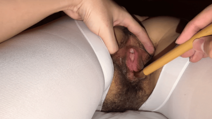 渐入佳境,开始迎合毛笔(可以看到骚逼里面的嫩肉也在跟着动,一吸一吸的样子)