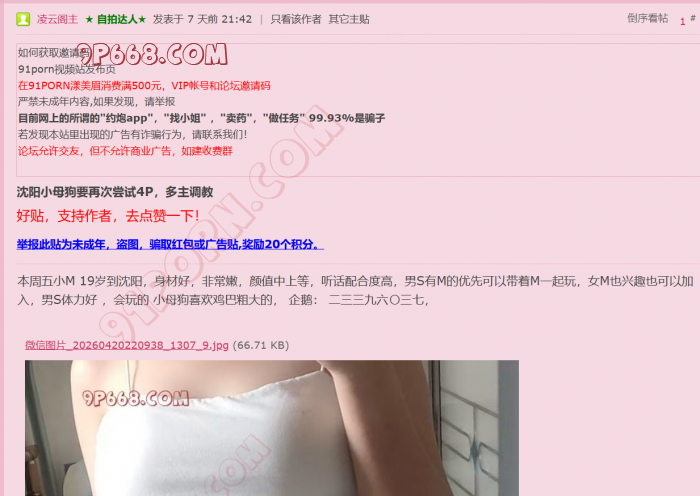 玩的就是真实,活动细节就不想用文字描述,原定的夫妻媳妇大姨妈来,3个男S一起活动的,活动的时候 给他们活动直播一段QQ视频和录音,沈阳靠谱的男S女M,绿帽夫妻,女M,男S,筛选可以活动,想玩就主动积极点,口嗨的,或是不主动的就不要加。活动之前必须见面,不敢见面的就免谈,安全第一,本人体制内工作,自己也有创业公司,我的小M颜值,身材,配合度高 。企鹅二三三九六〇三七,本人比较挑剔的 最早入圈在北京玩,已经入圈7、8年了,单男S参加要承担活动费用,见面给,活动之后给都无所谓,前期不差你那点钱。所有费用都是透明的,活动费用就是个门槛。以M会友,大家一起玩M,一起共赢。